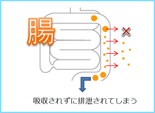 胃酸でコーティングが溶ける→成分が壊れる→腸に届きづらい→吸収率が悪い!